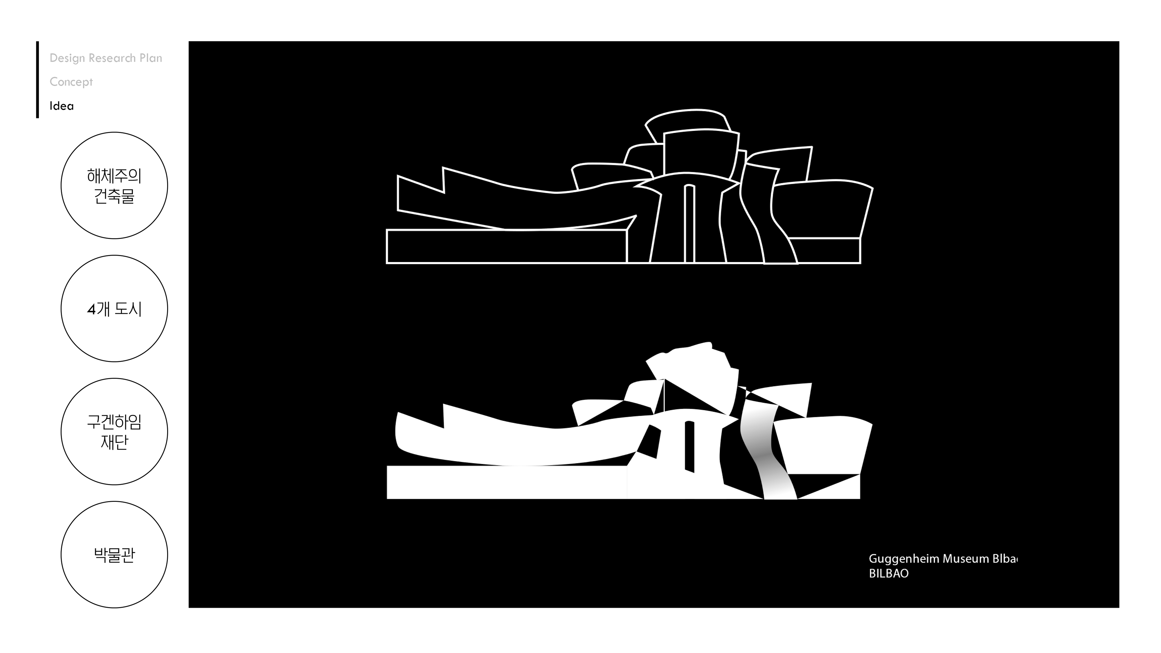 기존의 딱딱한 이미지에서 벗어나 동시대적이면서 혁신적이고 오래가는 디자인을 키워드로 잡고자 했습니다. 각 도시의 독특한 구겐하임 미술관 형태를 단순화하고 선(line)으로 디테일을 추가한 심볼을 탄생시켰습니다.