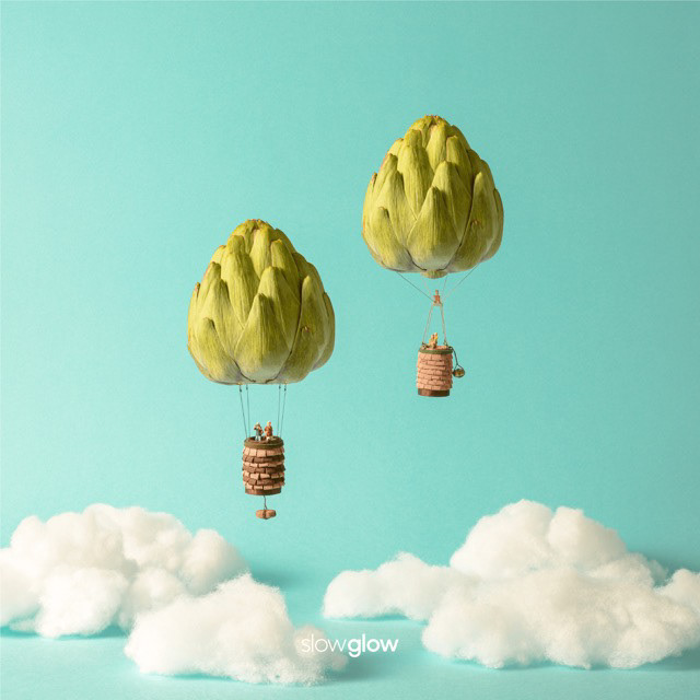 For Slowglow, a health and wellness brand, I designed and produced a series of miniature sets entirely by hand—without any CGI. Each scene was carefully built with crafted props, textures, and lighting to embody the brand’s values of warmth, vitality, and imagination. From floating artichoke balloons to alpine ski slopes sculpted around vitamin bottles, the sets reframe supplements as part of vivid, story-driven worlds. I directed the entire process—concept development, set construction, styling, and photography—ensuring every frame communicated both product clarity and narrative charm. This project highlights my ability to translate brand identity into tangible, immersive visuals, combining design precision with playful storytelling.